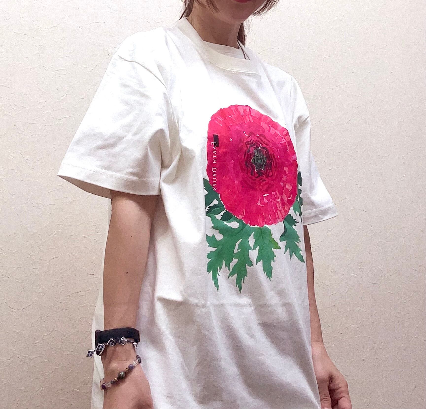 ラナンキュラスを大胆に配置した当店オリジナルのアートTシャツです。